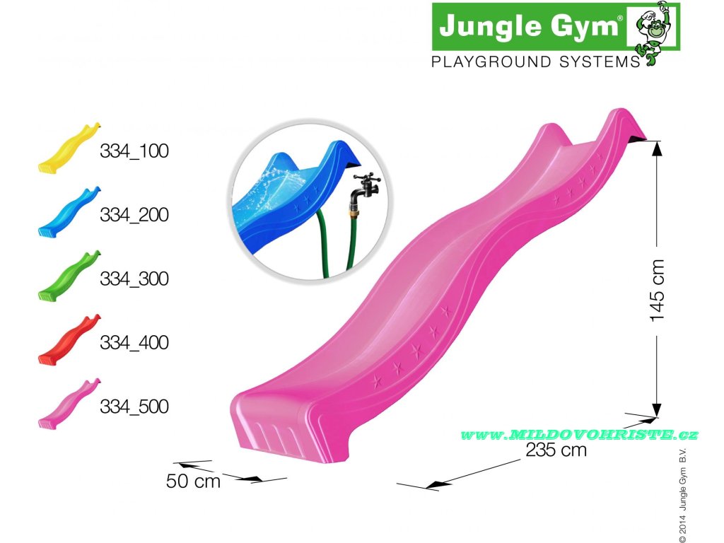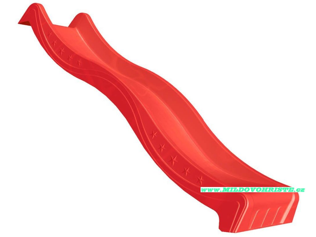 Šířka skluzavky je 50cm, vnitřní šíře je 34,5cm délka skluzavky je 265cm. Délka je dána tvarem a zakončením skluzavky, skluzná plocha 250cm je takřka stejná, jako u starého modelu s délkou 300cm. Určeno pro podestu (nástupní terasu) 145 -150 cm od země. Vzdálenost upevněné skluzavky od hřiště tak bude 235 cm.