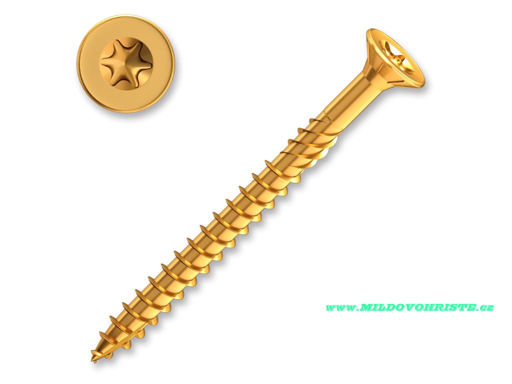 Frézovací drážky pod zápustnou hlavou usnadňují zapuštění vrutu do materiálu.