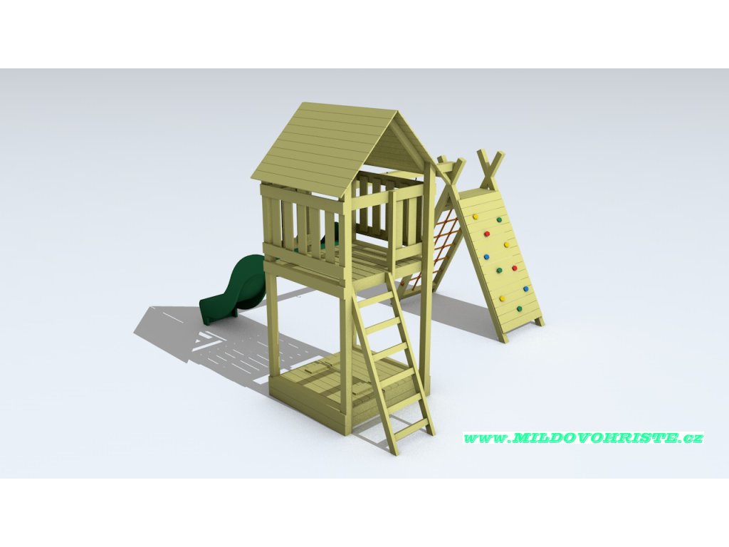 Věž 6P Z, rozměr základny 120x120cm, celková výška 300 cm, podesta ve výšce 150cm pro větší klouzačku, trámy 8x8 cm